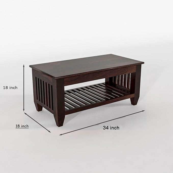 • MATERIAL & SIZE: This Sirius Solid wooden coffee table is made of natural Sheesham wood. It has an excellent coating. This coffee table Dimensions(In Inch ): Length 34 X Width 18 X Height 18.