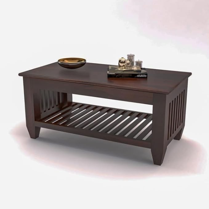 Kamdhenu art and craft Wooden Center Coffee Table with Storage | Solid Sheesham Wood Centre Table for Living Room, Drawing Room & Office