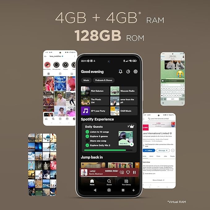 Enjoy seamless multitasking with 4GB RAM and 4GB expandable RAM, ensuring smooth performance. With up to 128 GB storage, store more apps, photos, and videos without compromising speed or efficiency.
