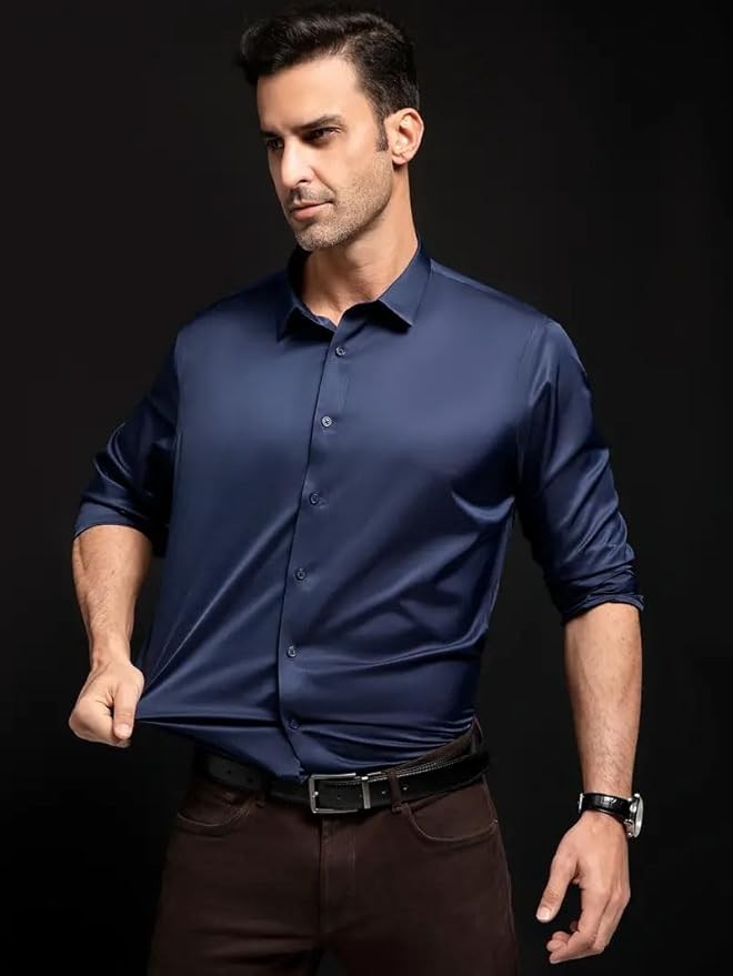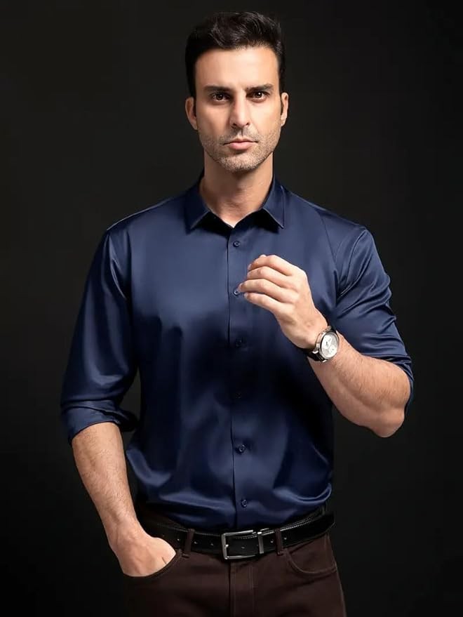 Men's Stylish Solid Satin Casual Shirt for Men Full Sleeve