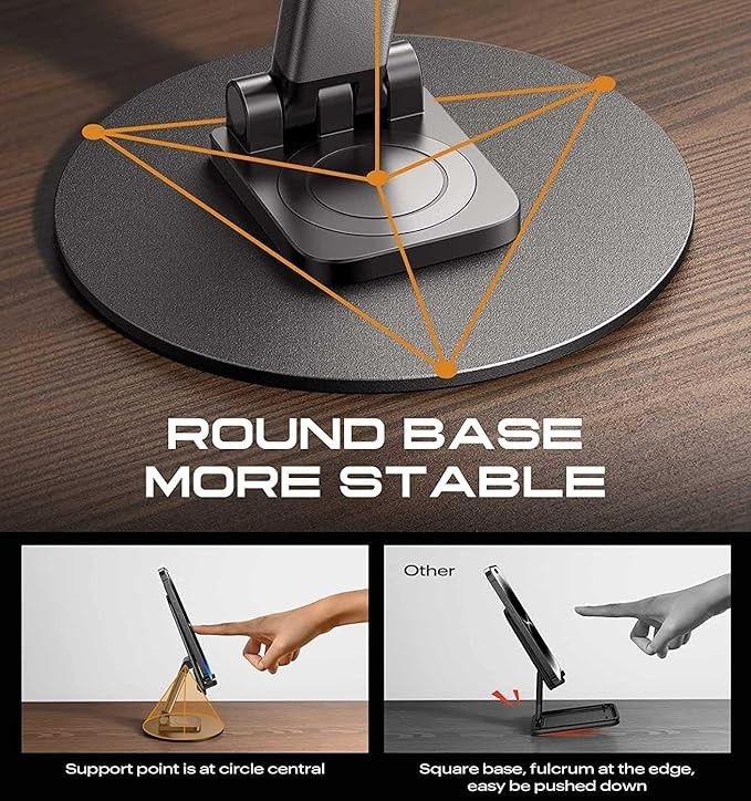 • 【High Quality Material】: With an aluminum alloy plate, and an ABS shell, this phone stand offers durability. The non-slip silicone foot pads offer a secure grip, protecting your phone from scratches and slips.