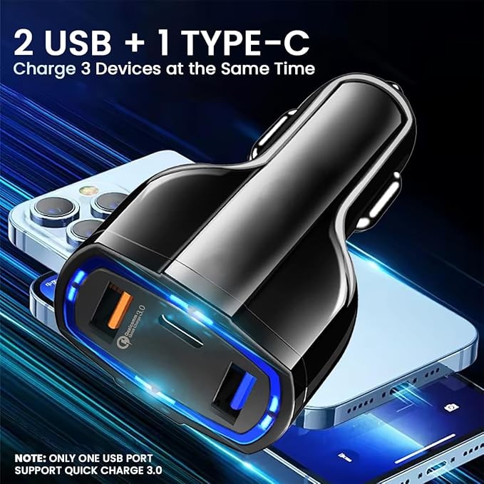 pTron Bullet Pro 36W Type-C/PD 3 Port Fast Car Charger Adapter, Compatible with All Smartphones, Tablets & Other USB Powered Devices (Black)