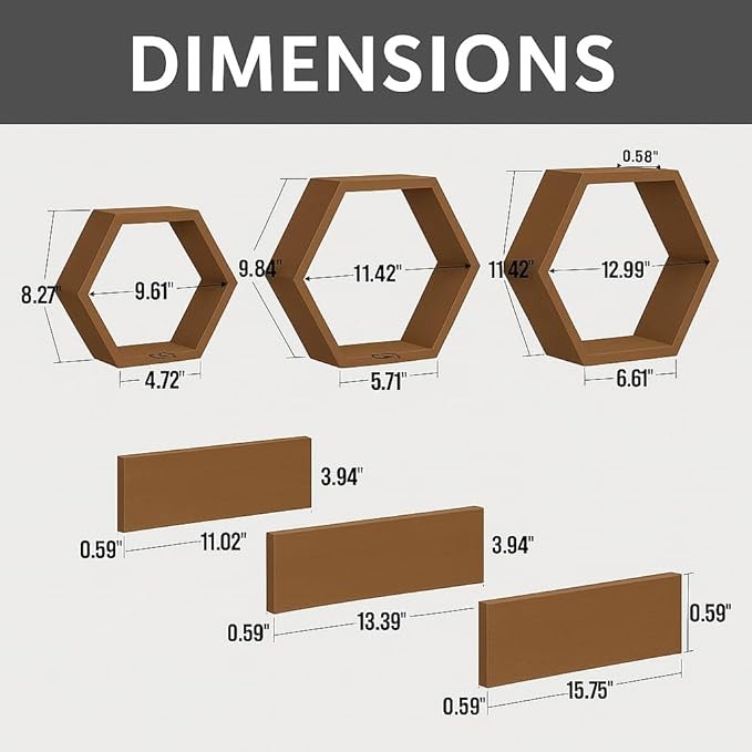 Sabri shopee Wooden Floating Wall Shelves for Living Room, Wall Mounted Set of 6 Hexagon Shelves for Photos Plants and Wall Decor Honeycomb Wall Shelves for Bedroom (Navy Blue) (Brown)