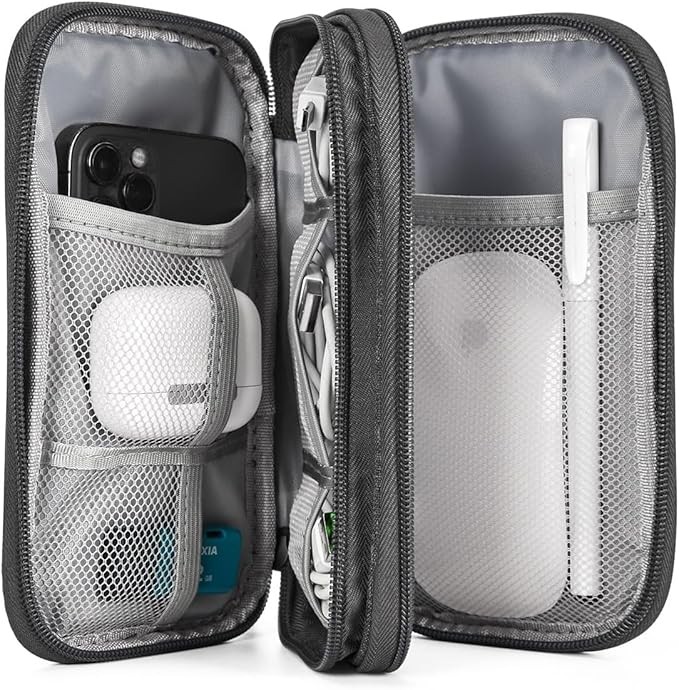 [ Double Layers for Ample Space ] : Featuring a double-layered interior compartment, our digital storage bag offers ample space for your cords, cables, USB drives, cellphone, charger, mouse, flash drive, and other electronic accessories. Keep everything organized and within reach.