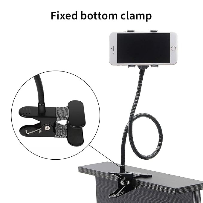 Cell Phone Holder, Lazy Bracket, The Clip-On Holder Is Clipped Onto Any Desk,Mobile Stand For Bedroom,Office,Bathroom,Kitchen.Perfect For Viewing Videos On Phone And Enjoy Music, Games In Bedroom, Gym, Office, Reading, Watching Movies, Listening To Music On A Table Or Desk. Very Convenient