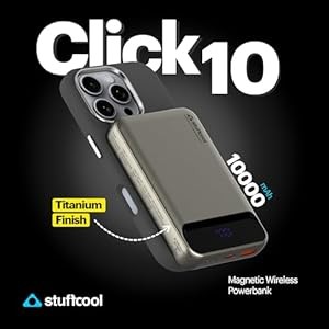 [Click to Charge!]: Introducing a slim magnetic wireless powerbank in Natural titanium finish, perfect to the stick to the back of your iPhone and charge! Featuring 15W of Magnetic Wireless charging, the Click is the perfect companion for your iPhone 16/15/14/13/12. Simply Click on the back on the iPhone and start charging!